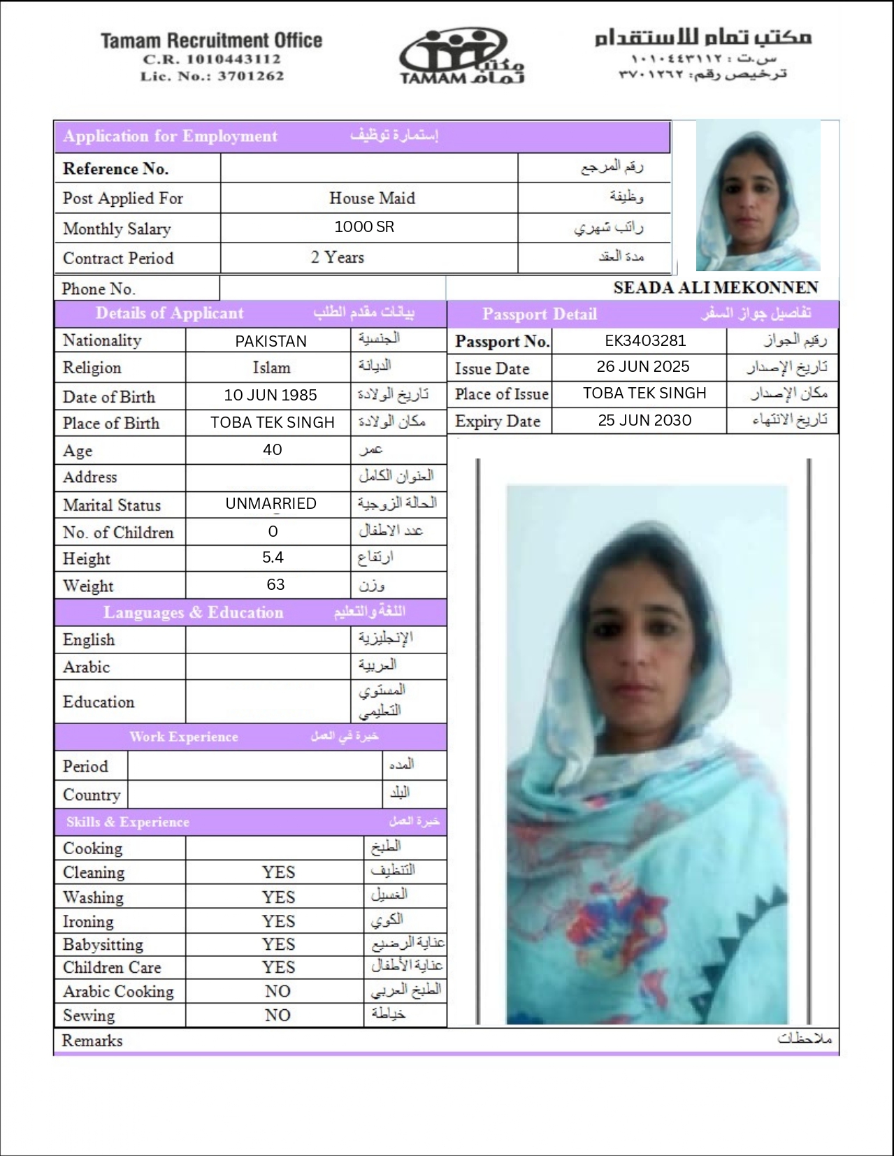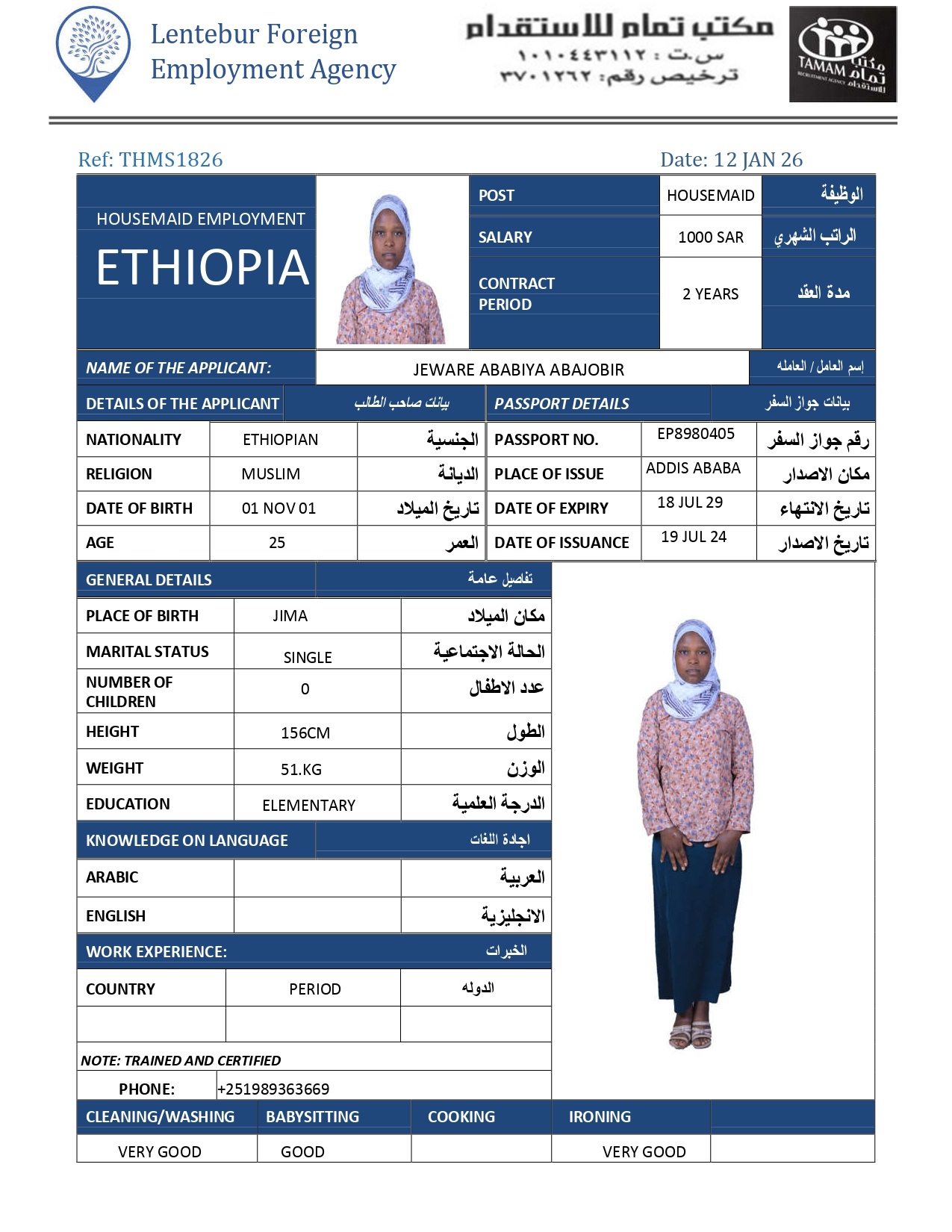 عاملة منزلية