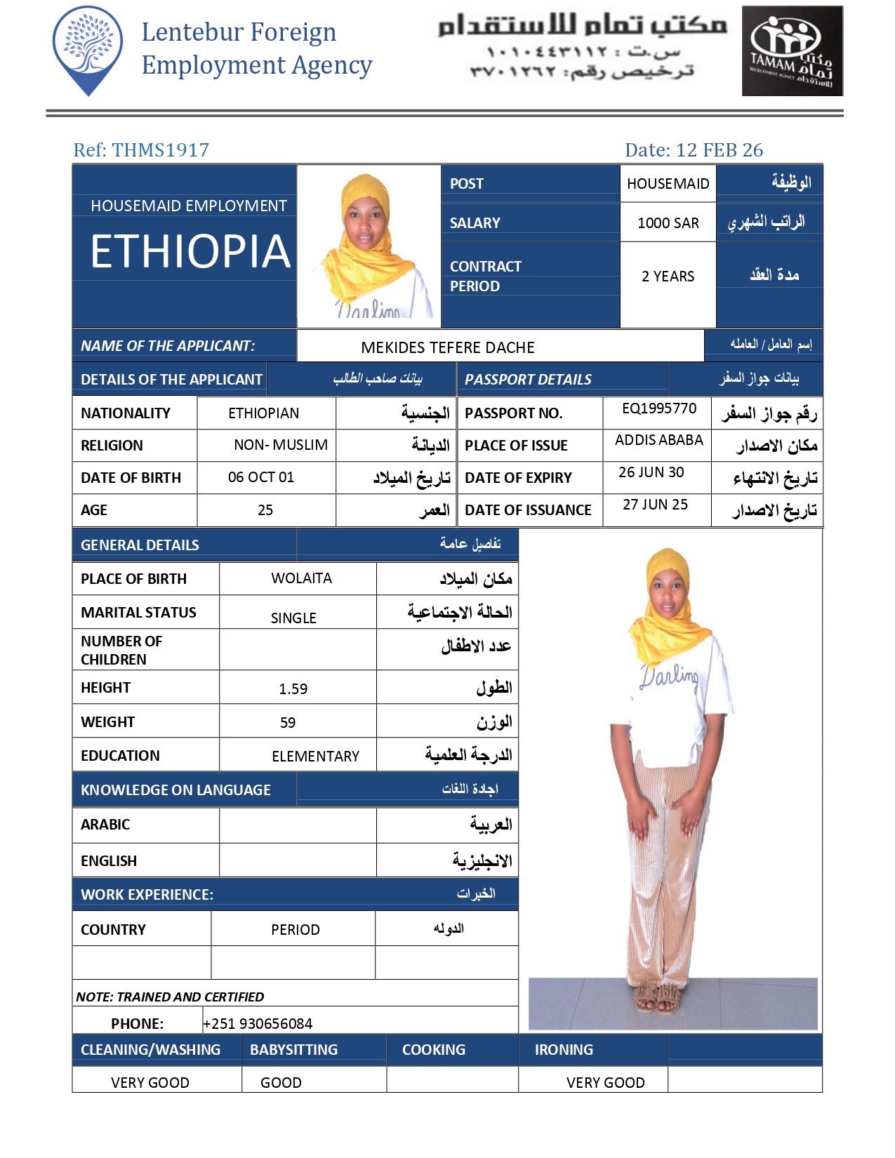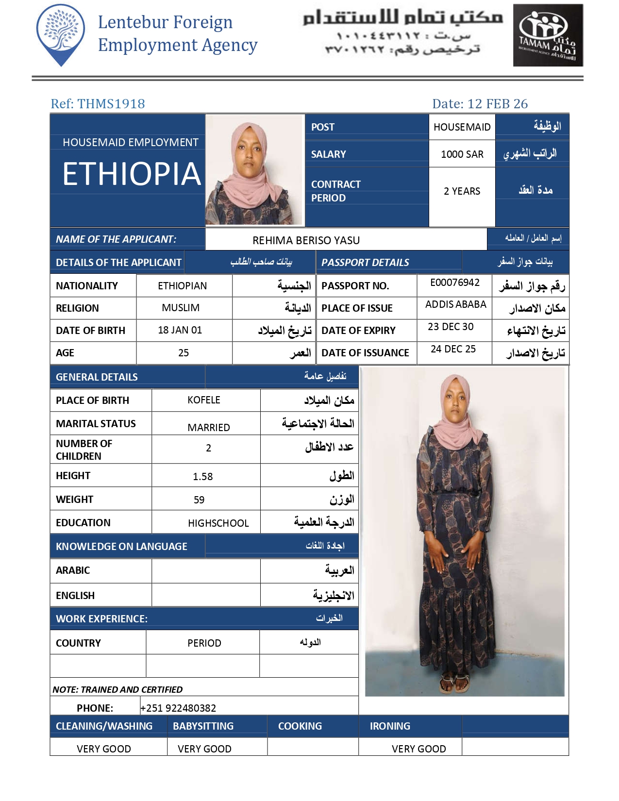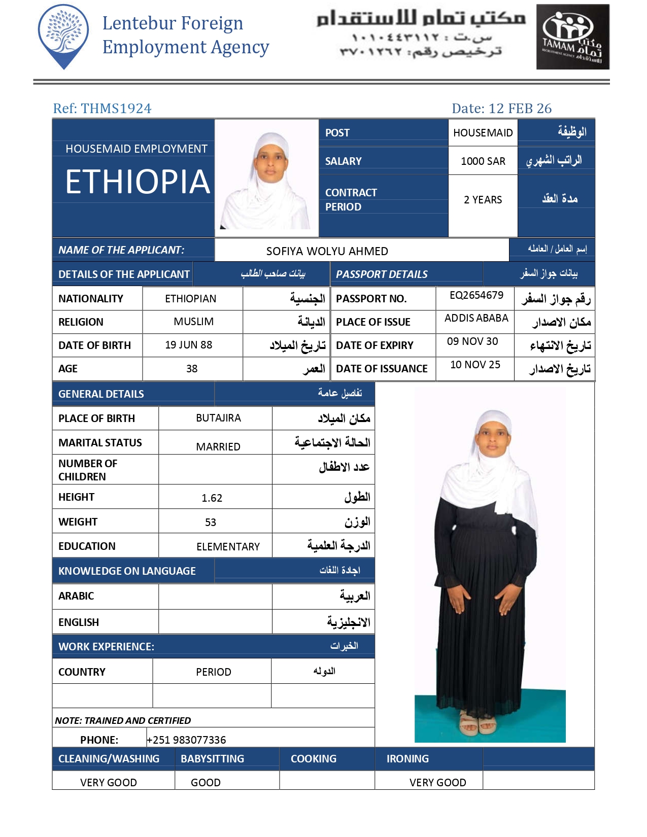 عاملة منزلية