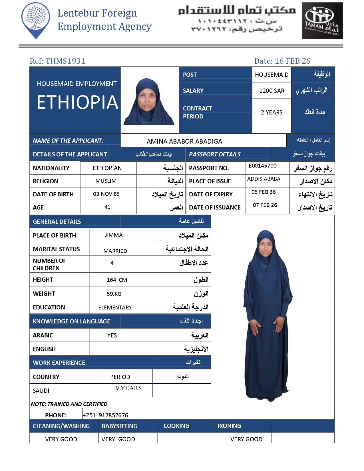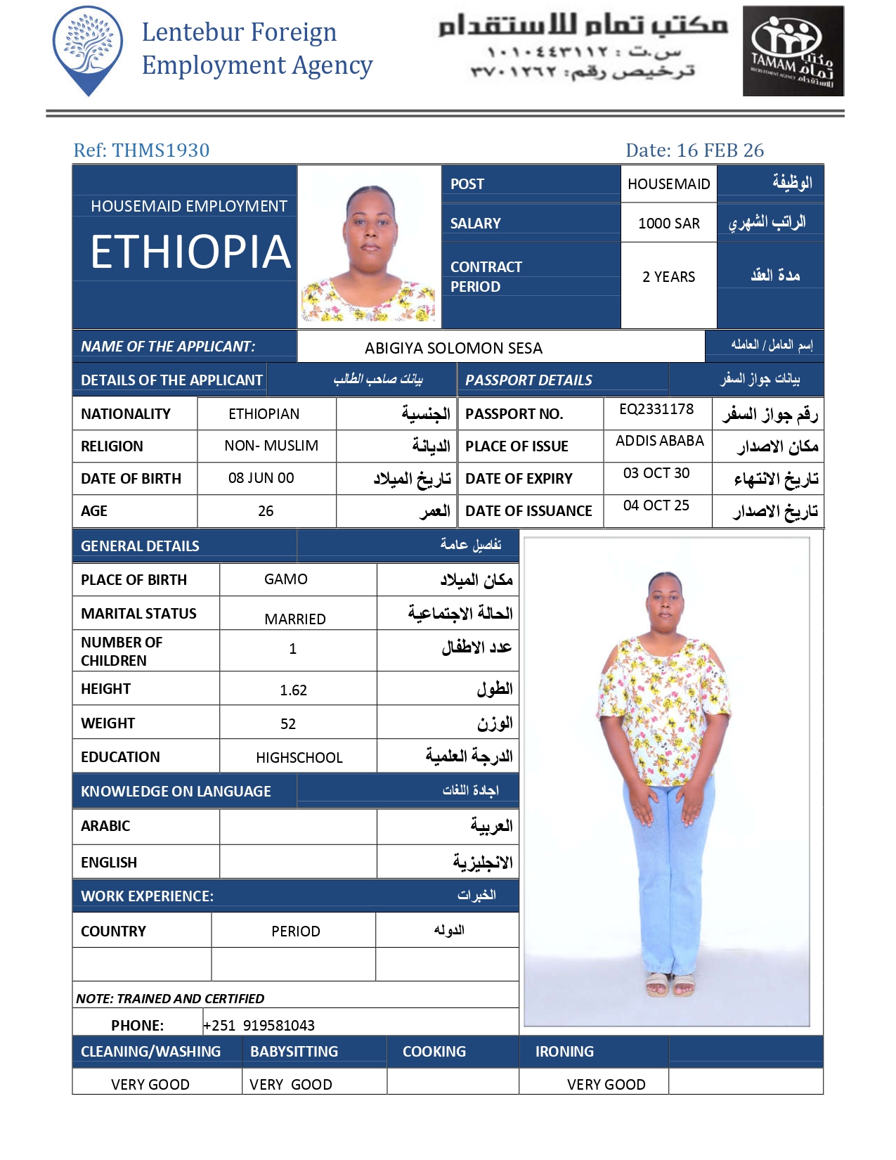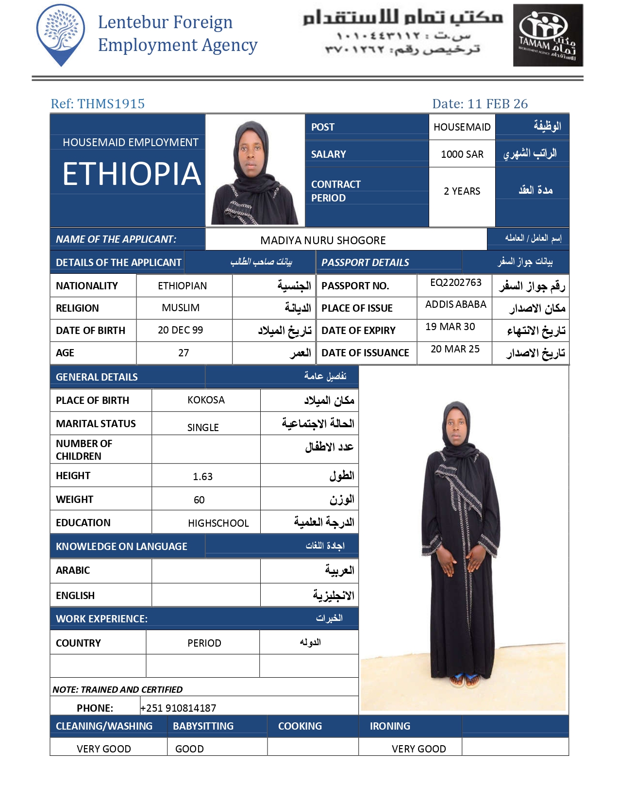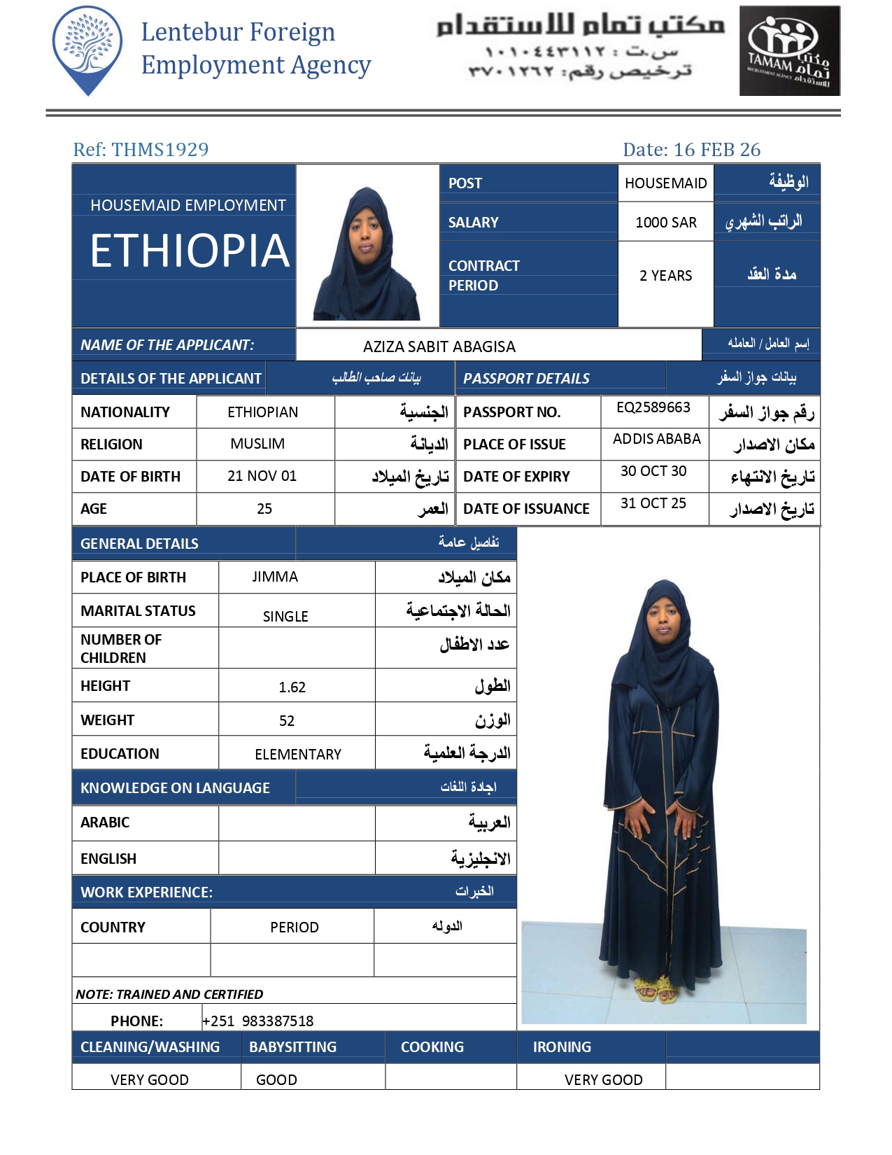عاملة منزلية