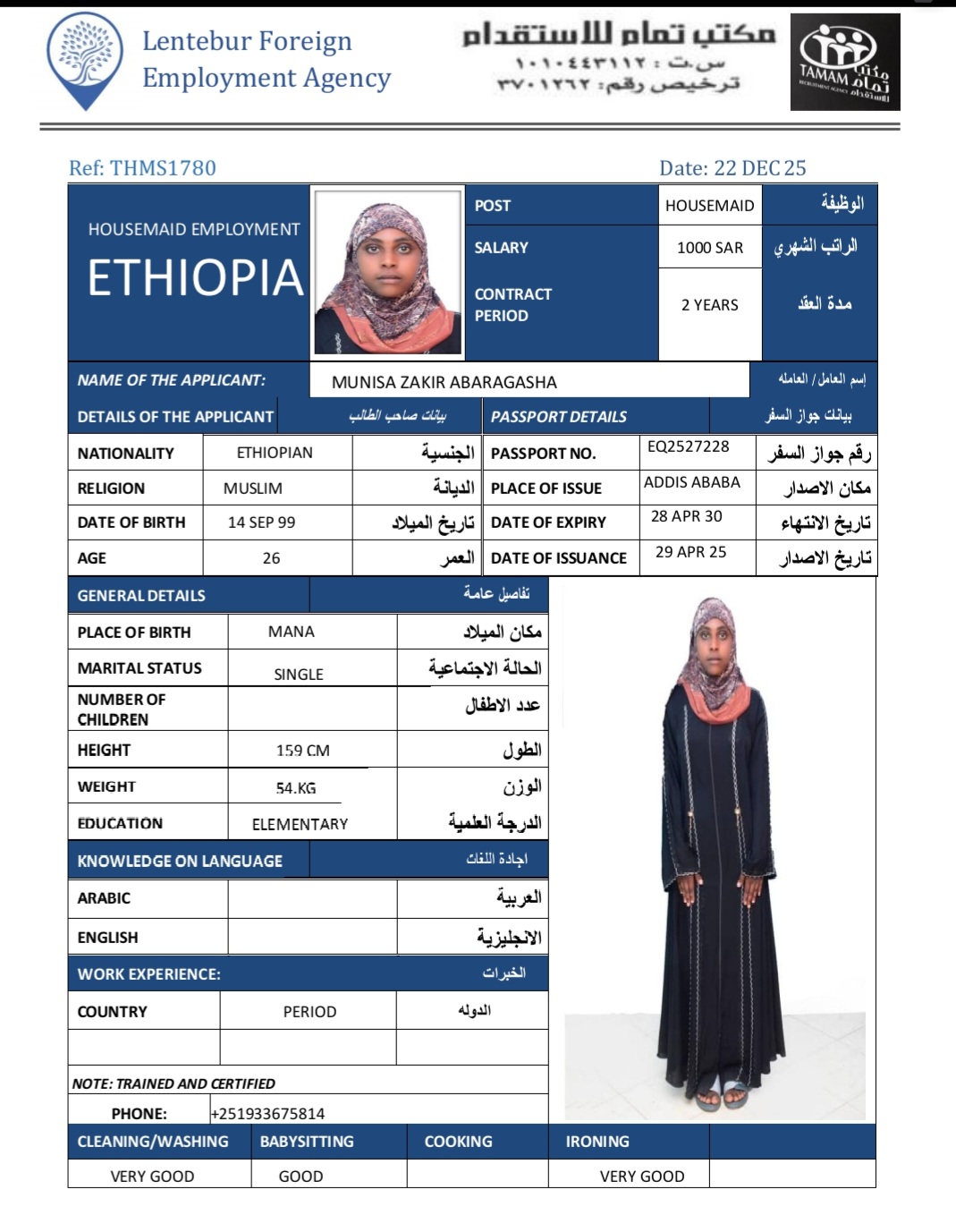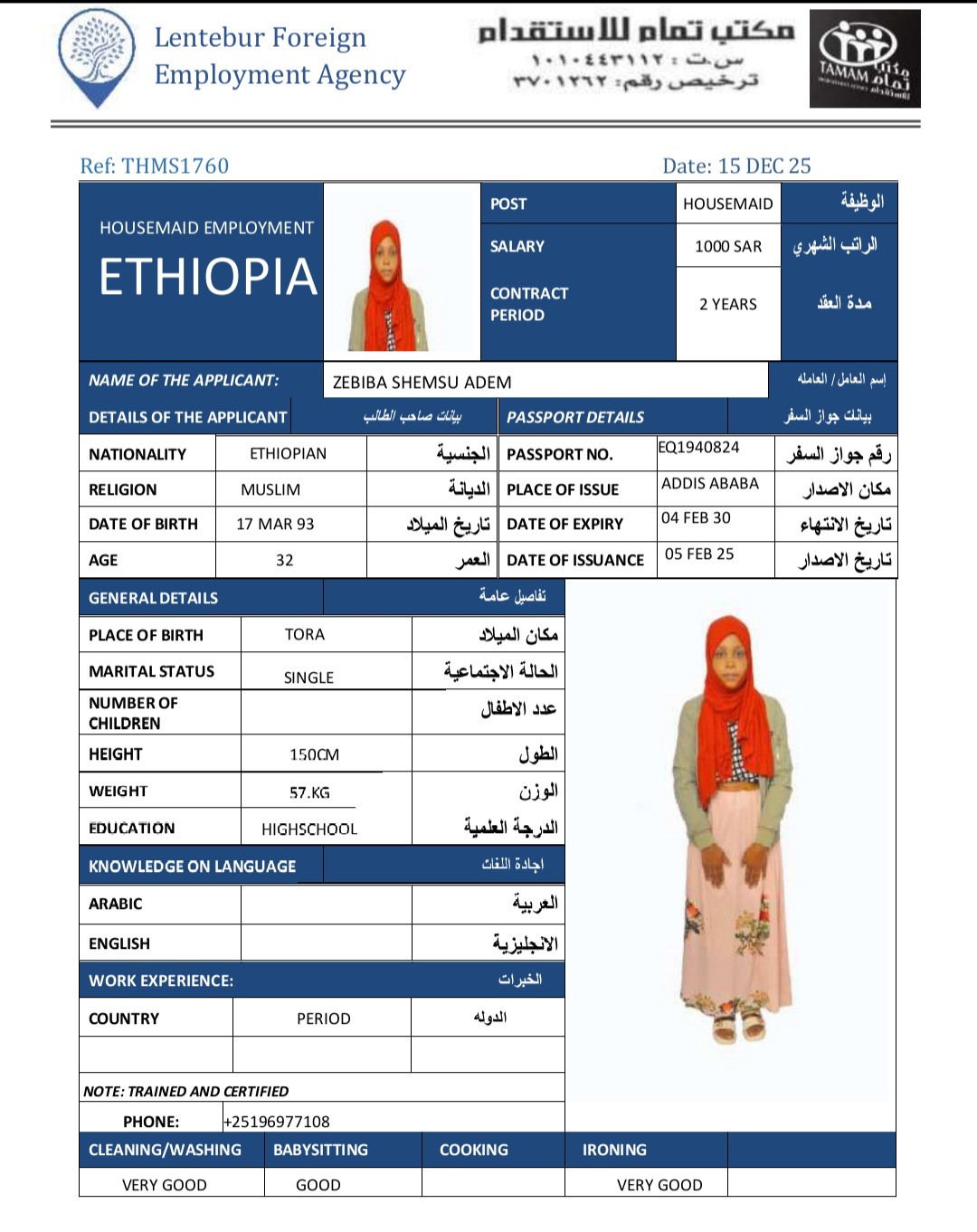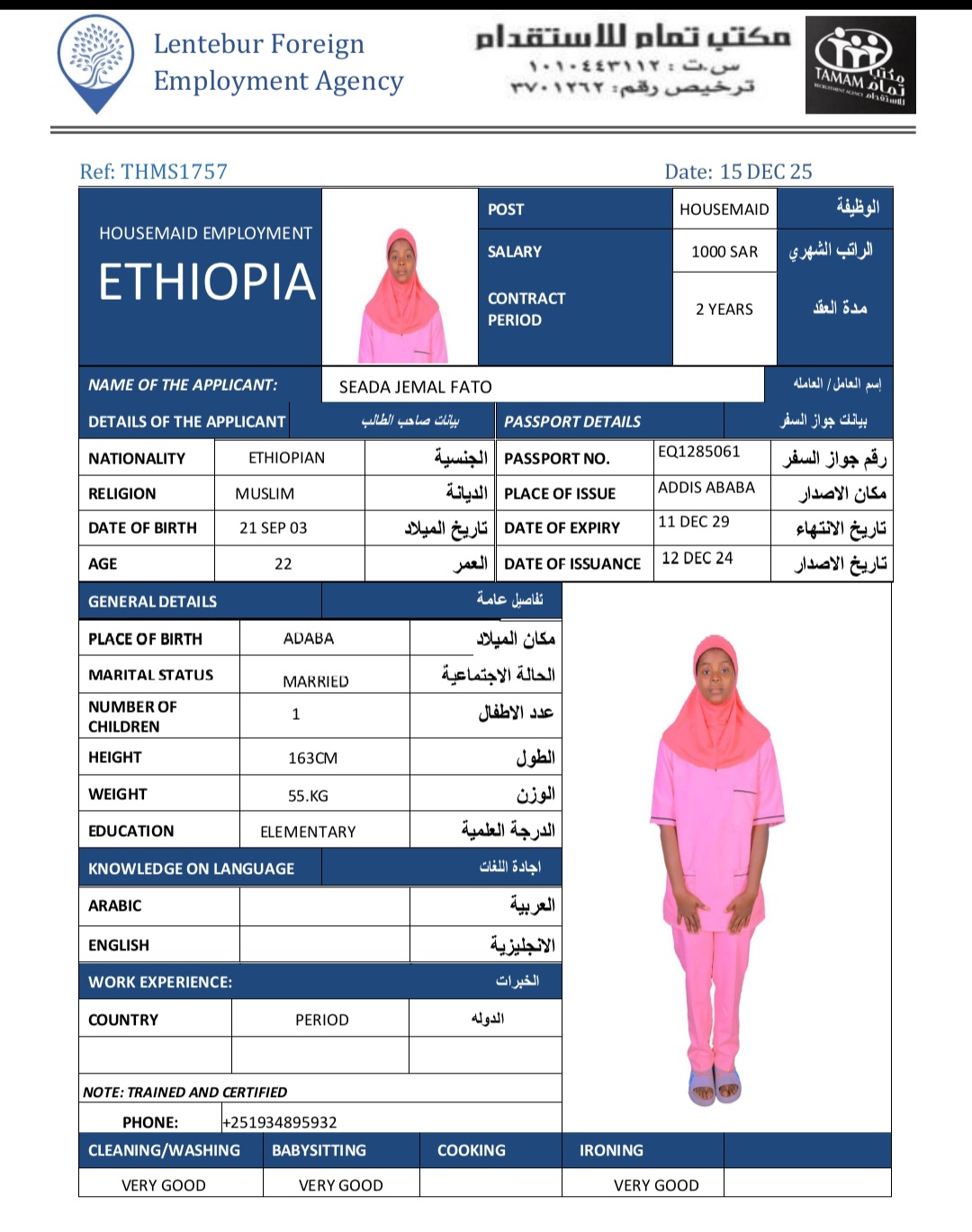 عاملة منزلية