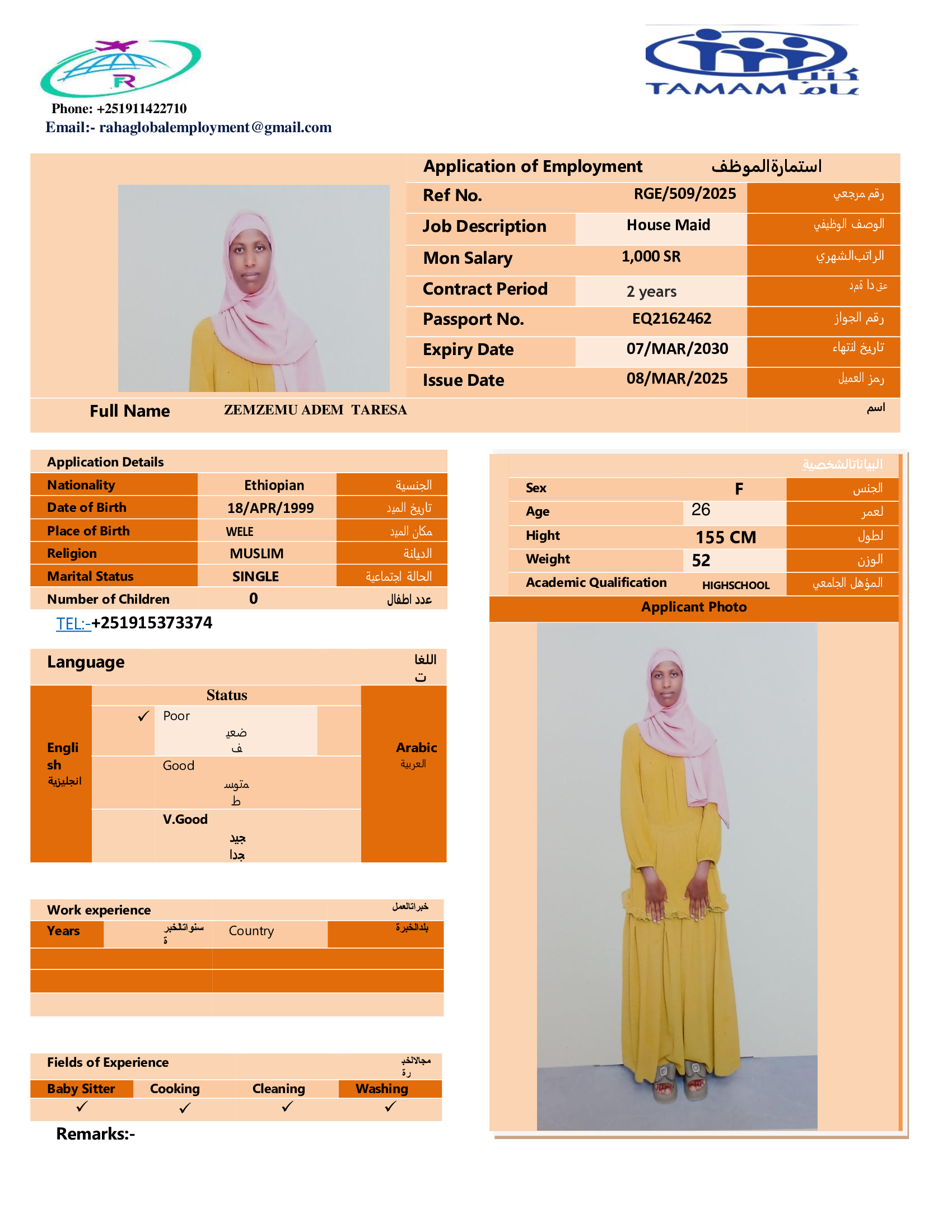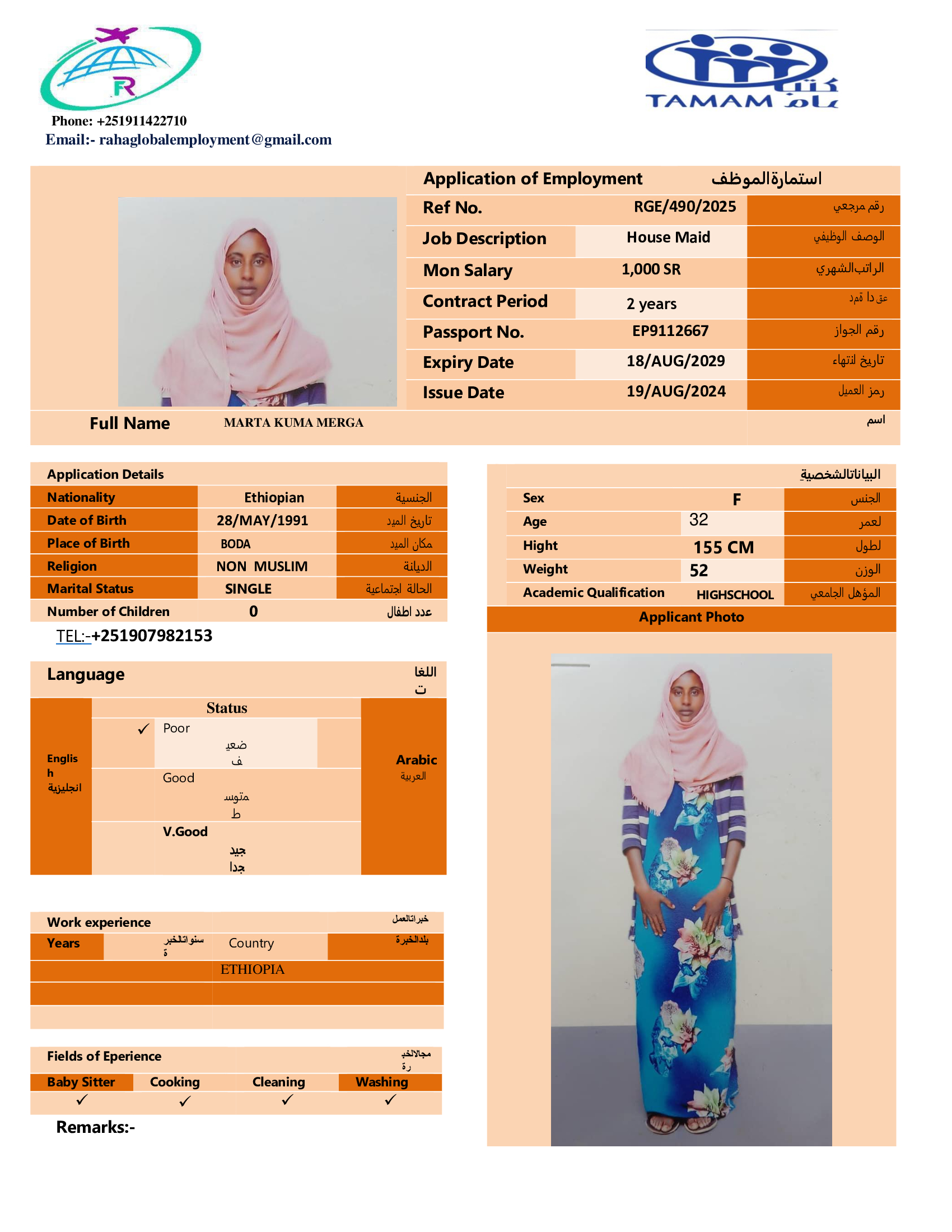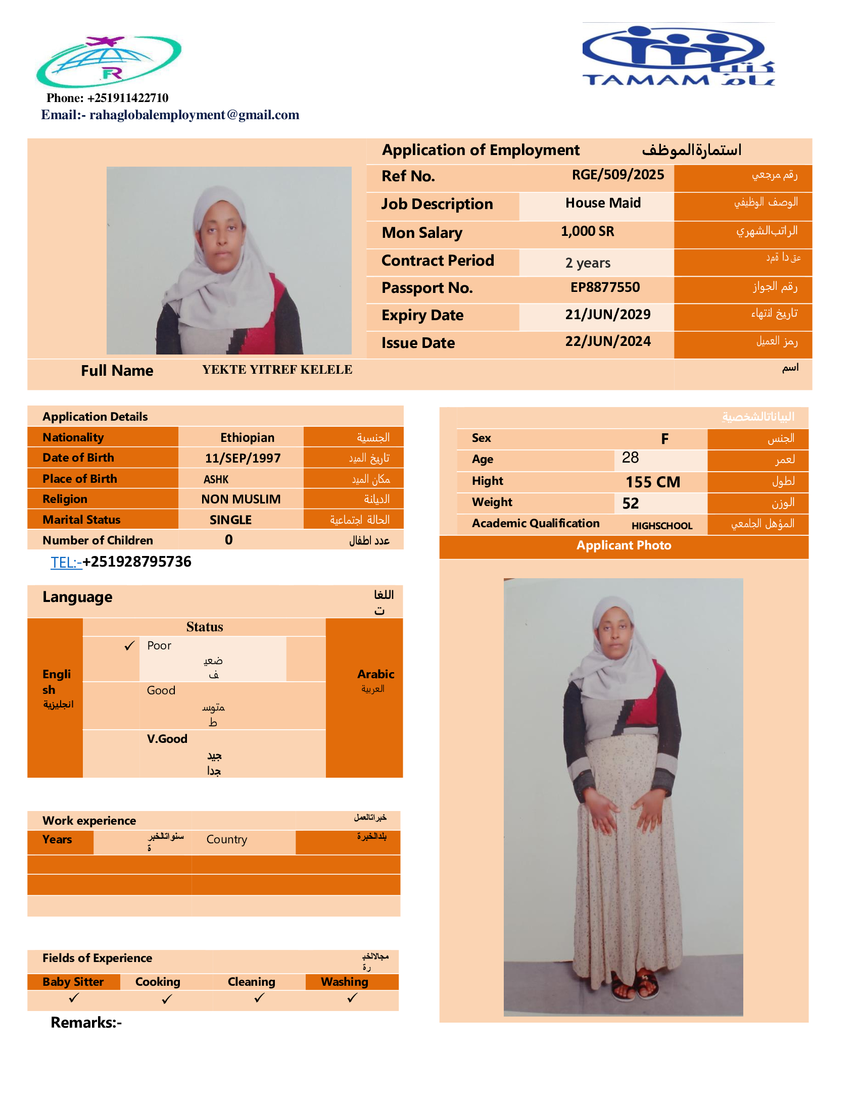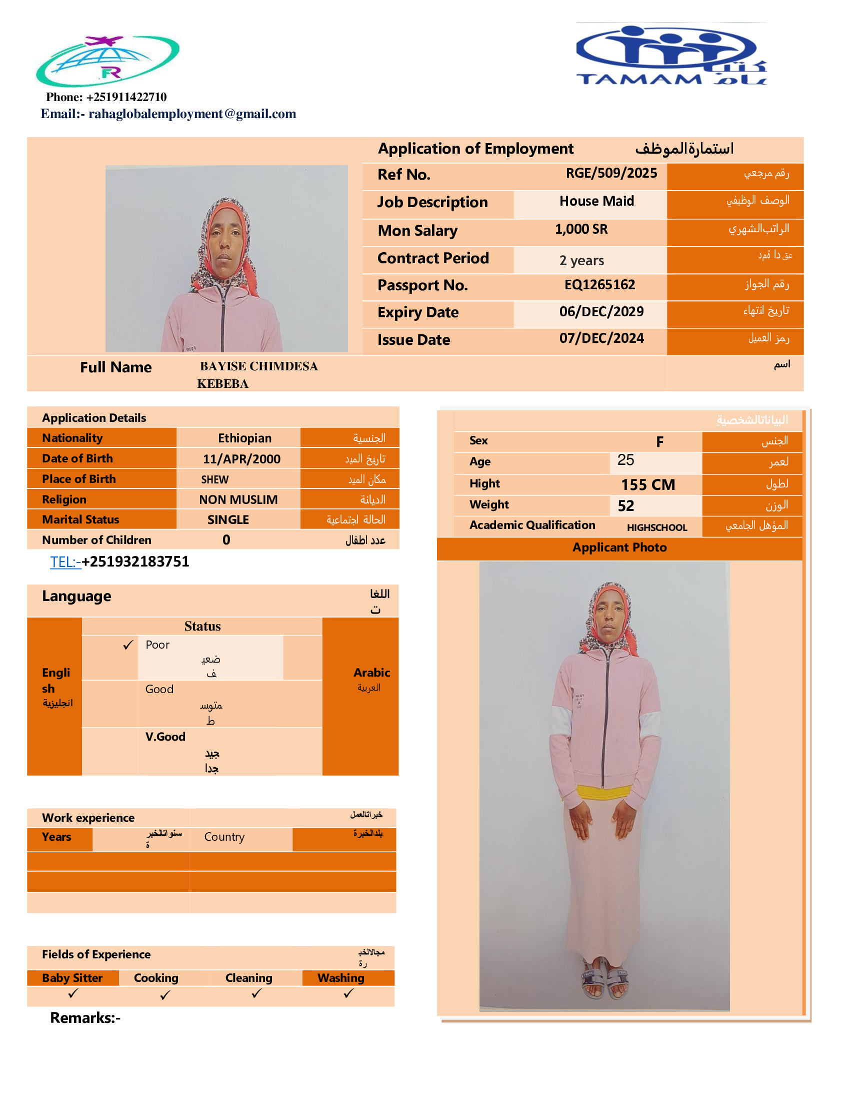 عاملة منزلية