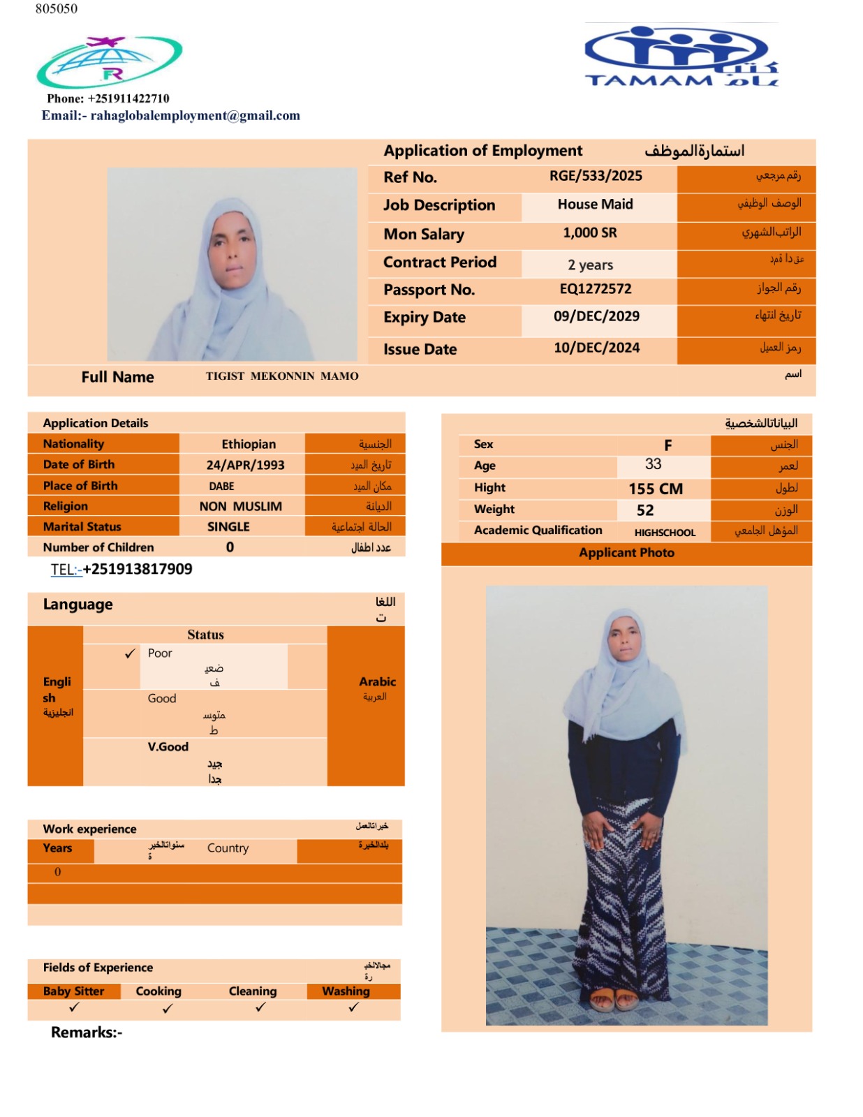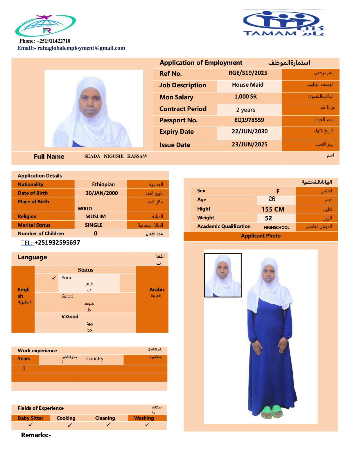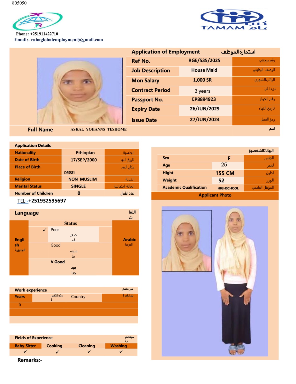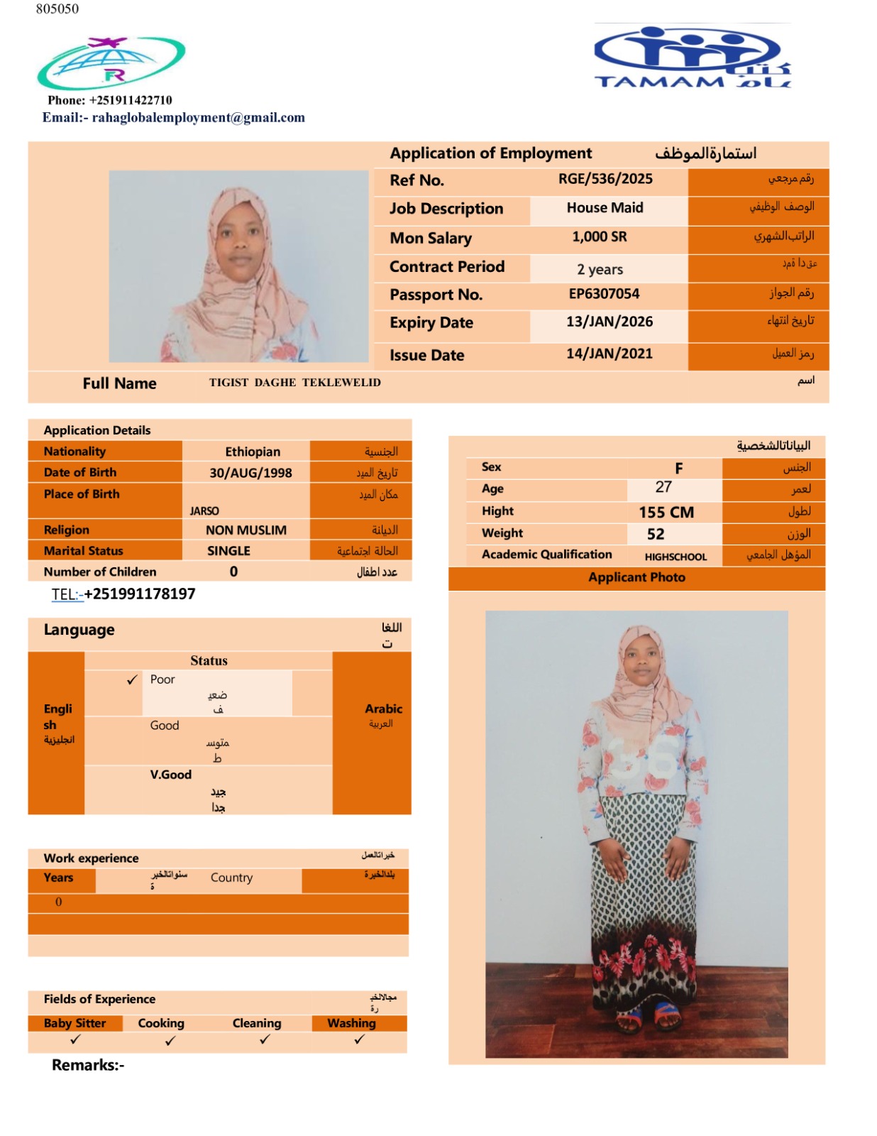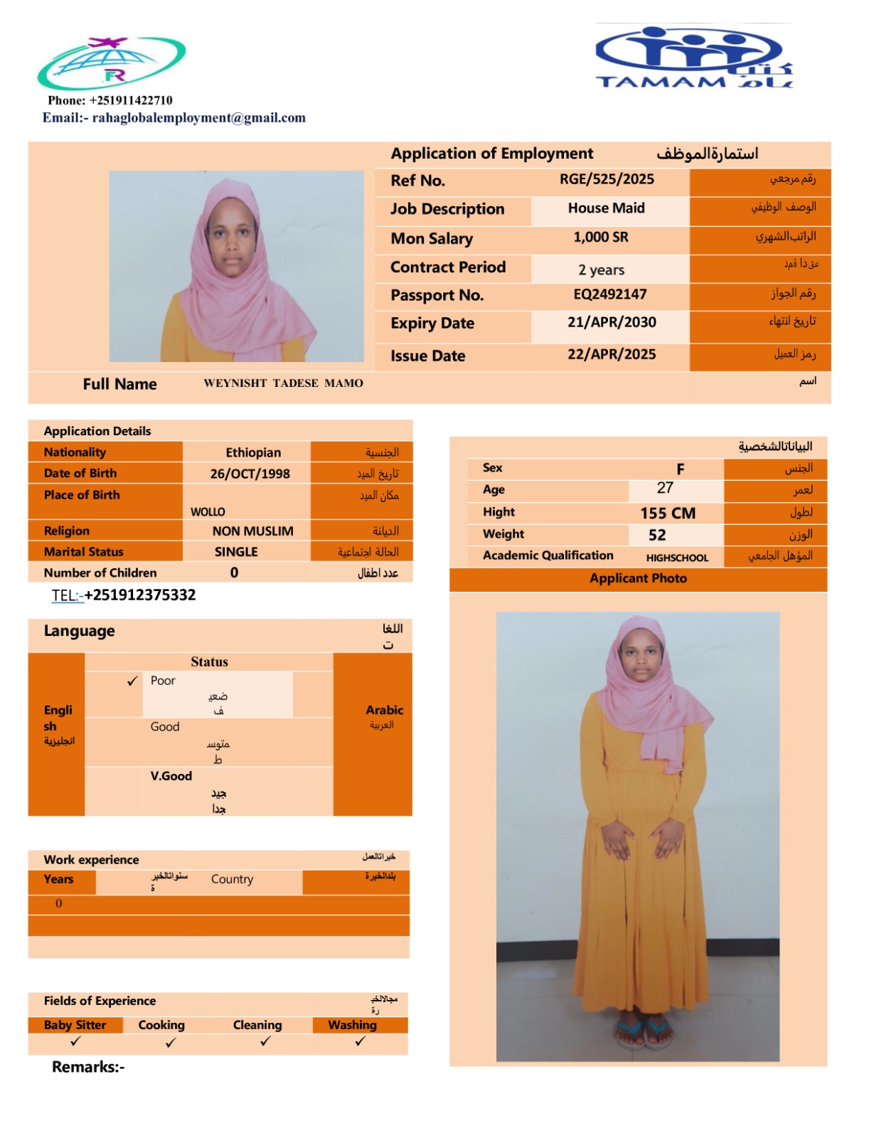 عاملة منزلية