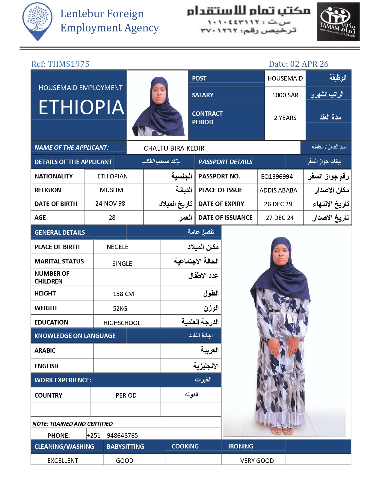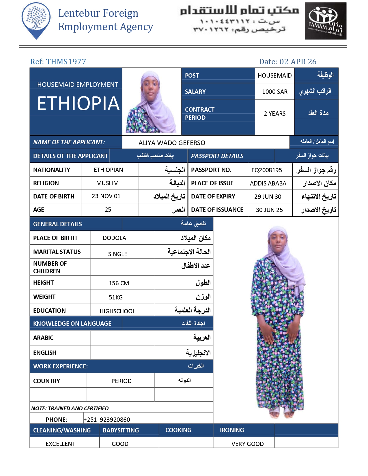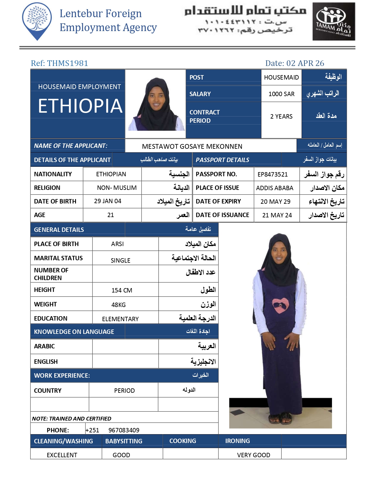 عاملة منزلية