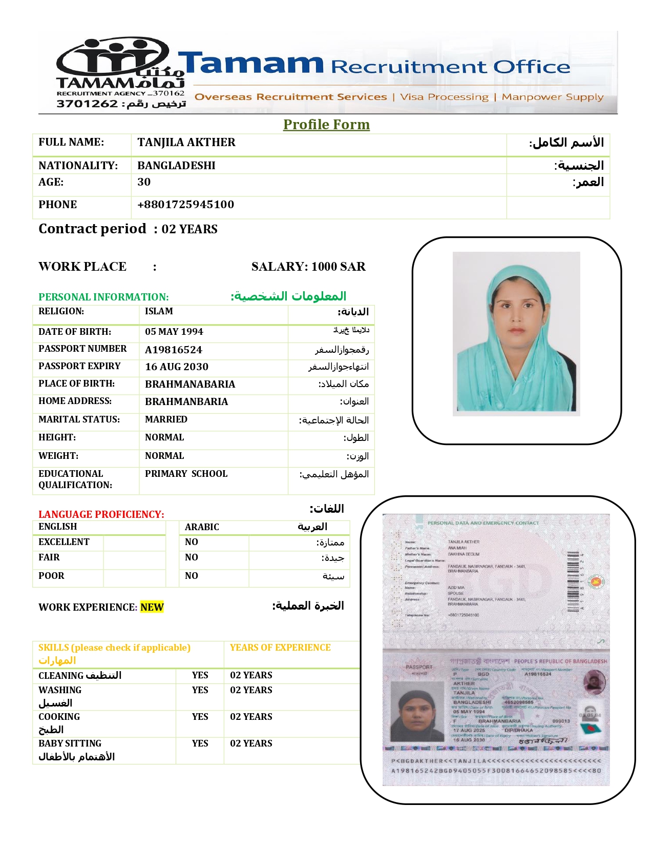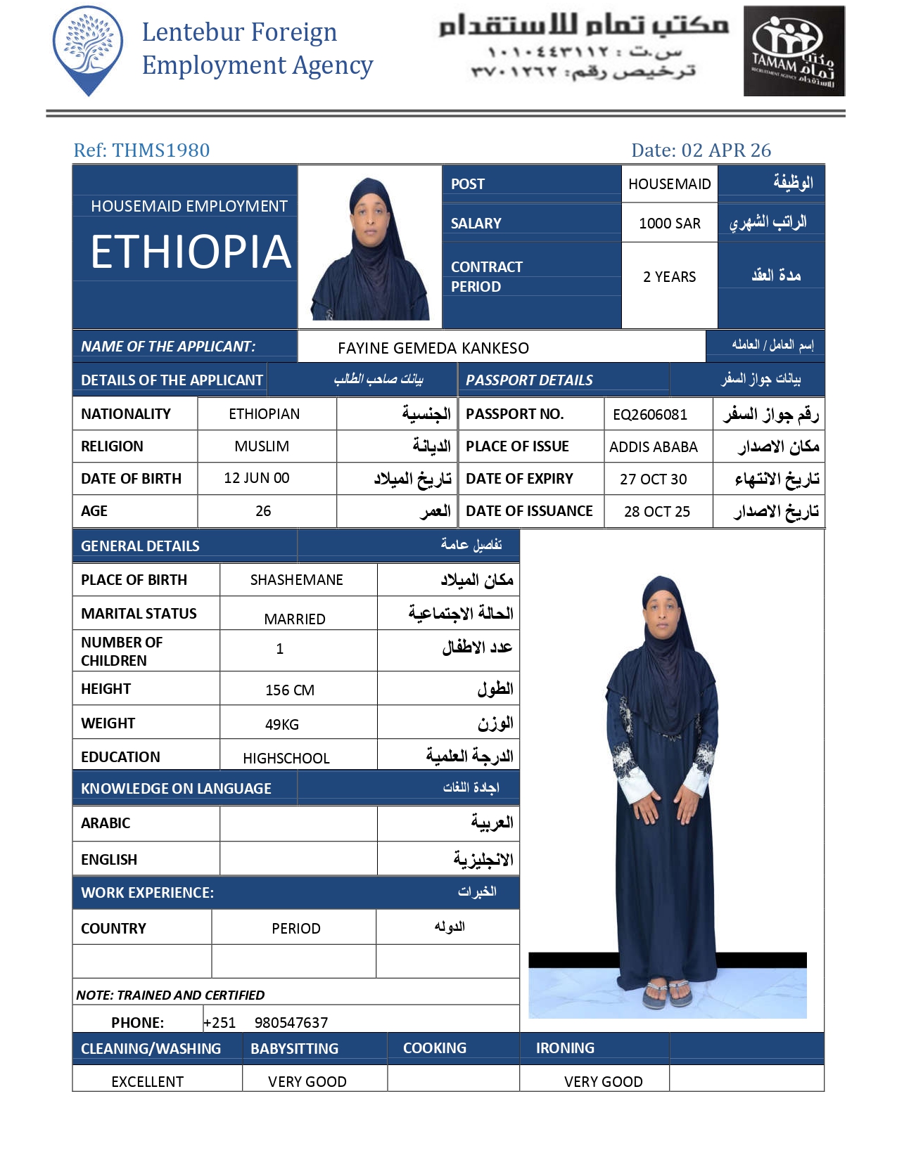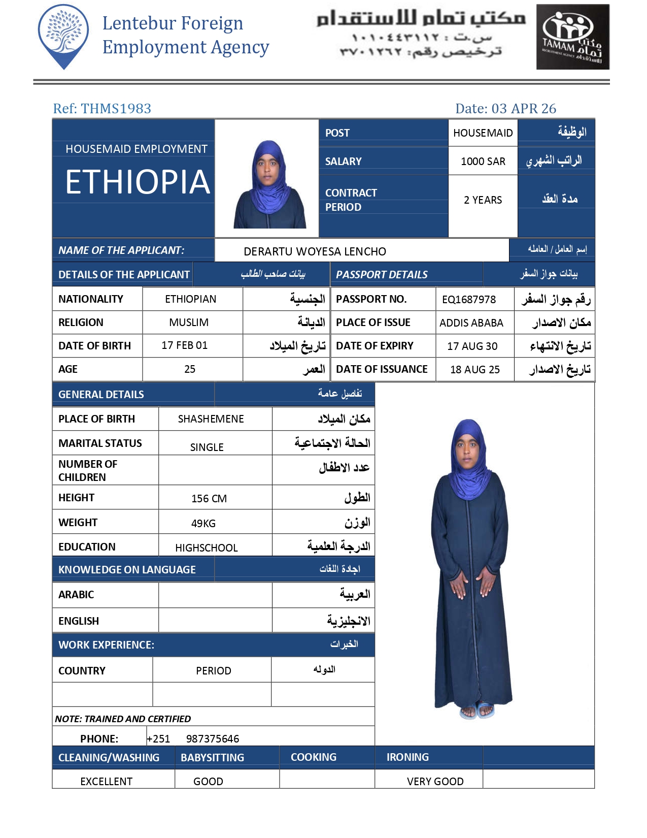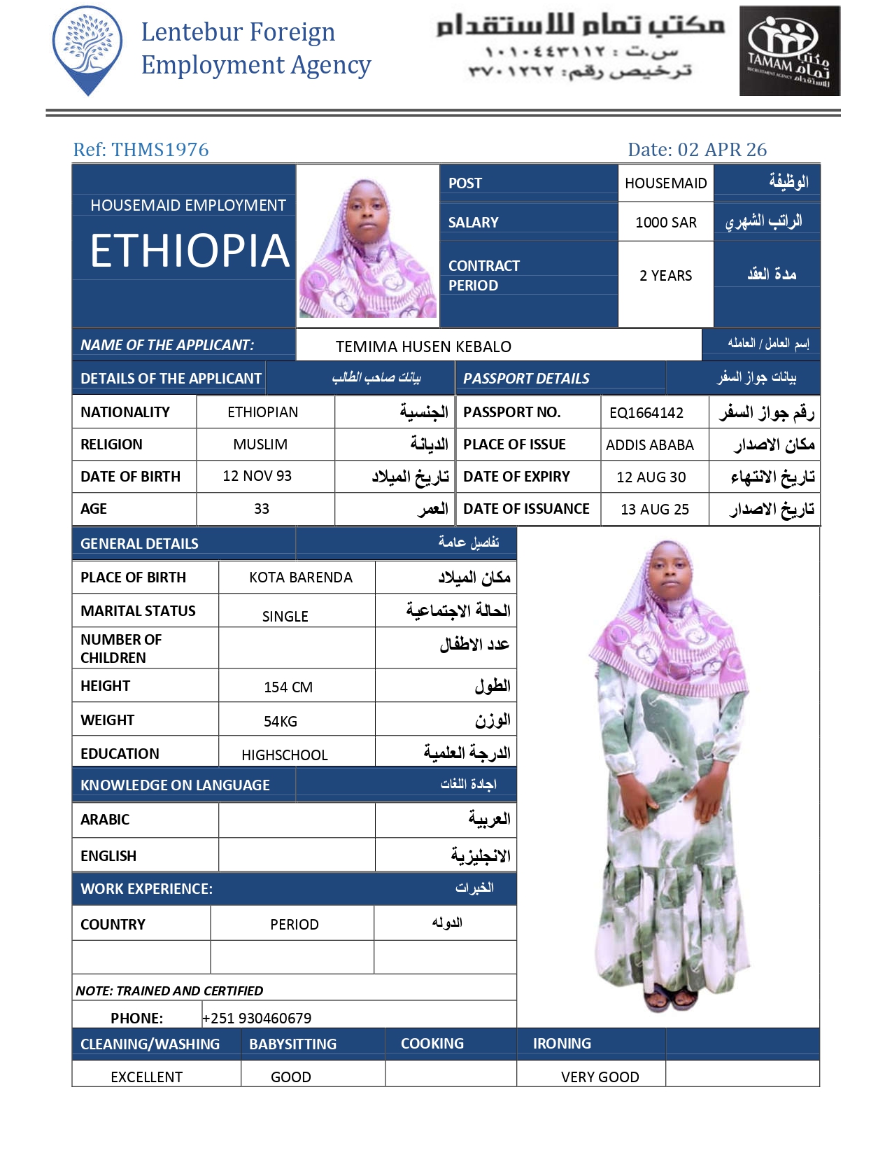 عاملة منزلية