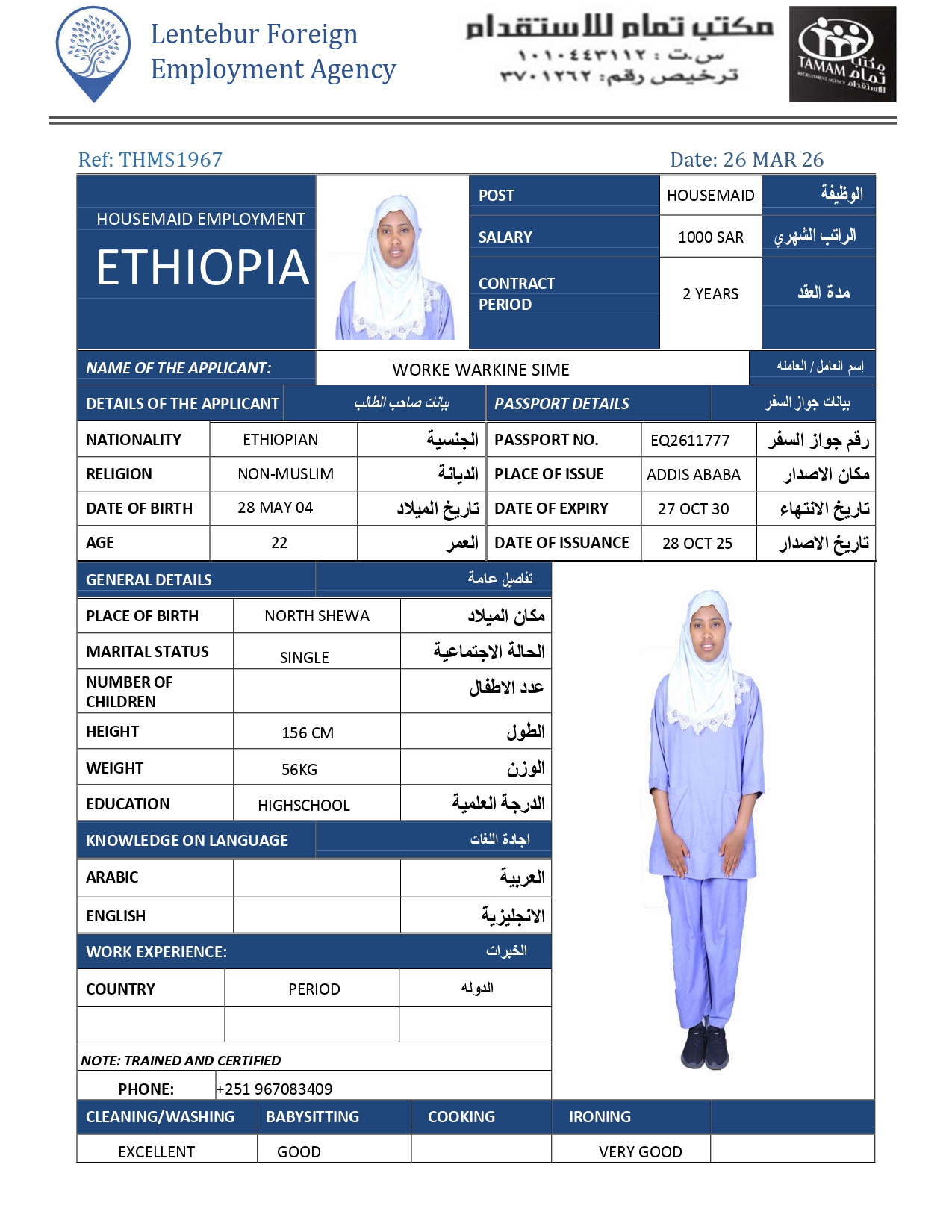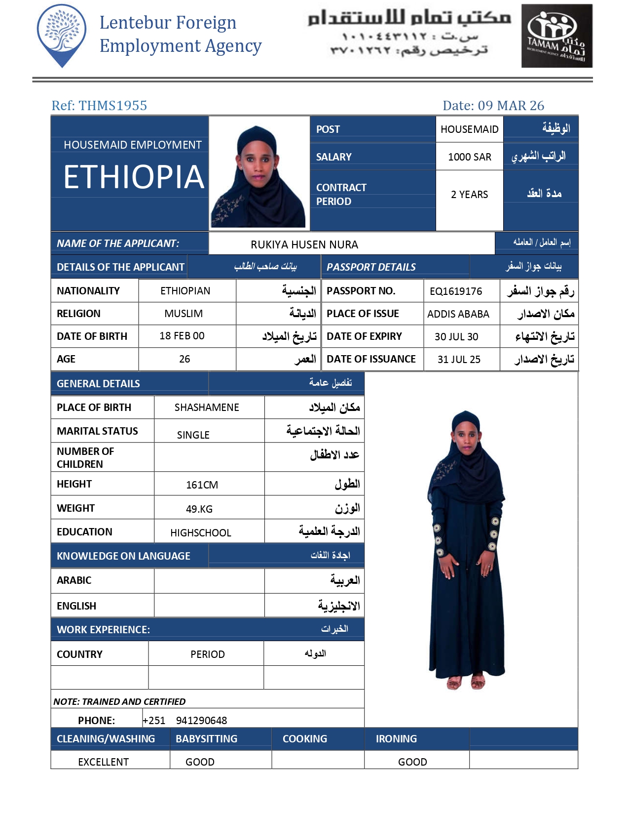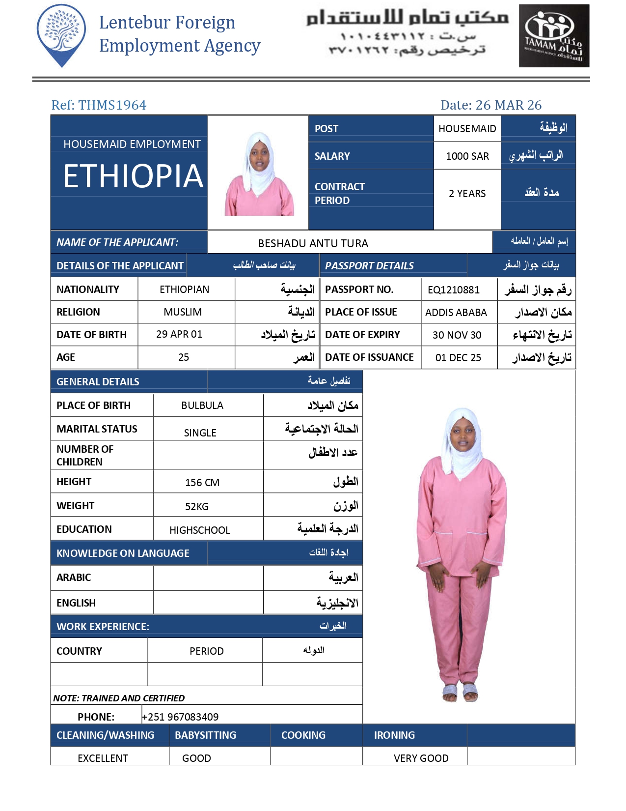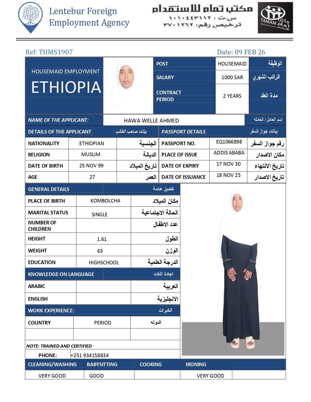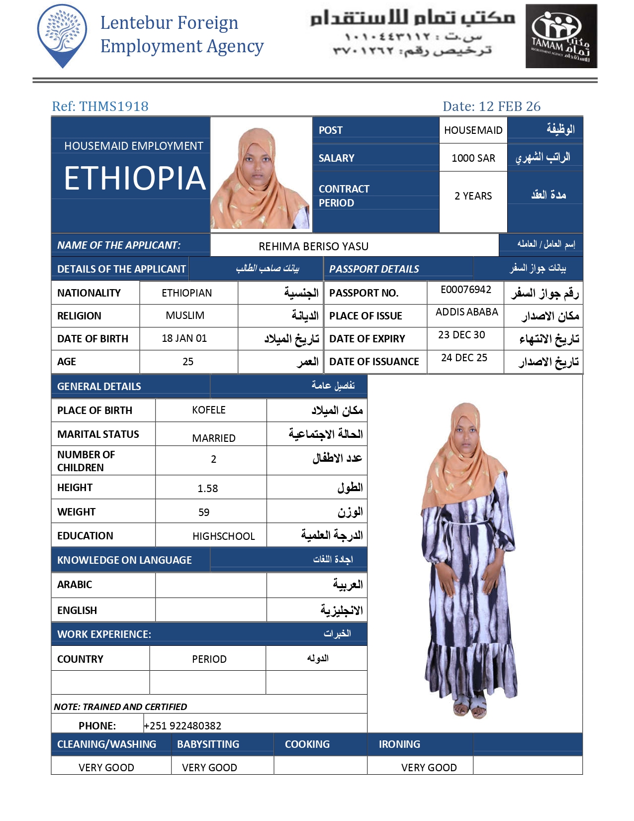 عاملة منزلية